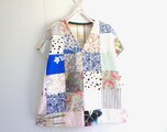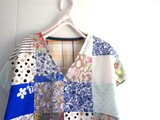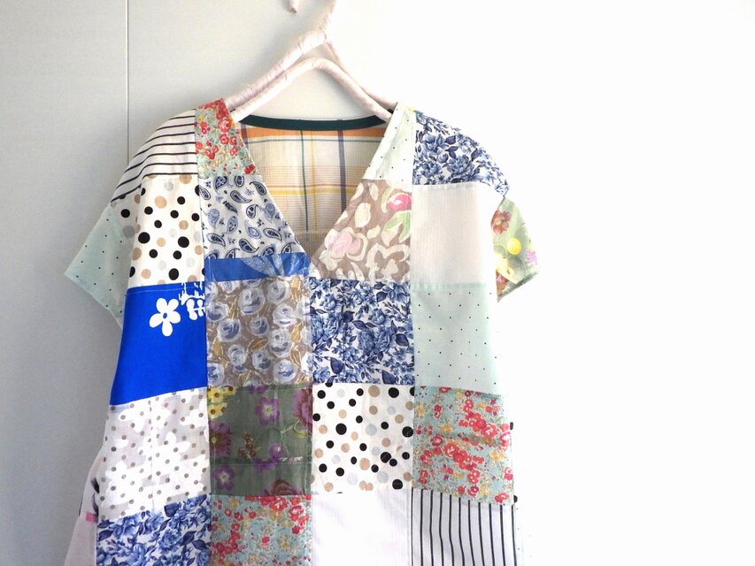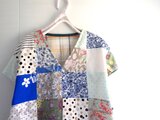 前身頃は一枚々が美しいコットン生地をパッチワークしました。