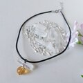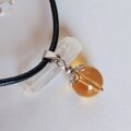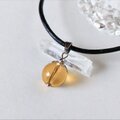 天然石 シトリン 本革 サージカルステンレス チョーカー ネックレス ペンダント