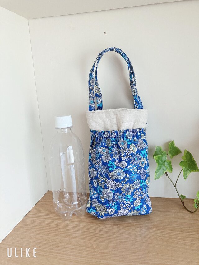 ペットボトル用保温保冷トートバッグ*ブルーフラワー