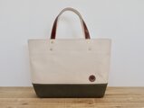 レザーハンドル帆布トート(Zip Top) 生成り×オリーブ