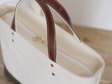 取っ手は帆布とヌメ革(栃木レザー)を縫い合わせで使用しているのでとても丈夫です。