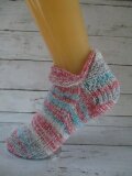 ドイツのブランド Rellana Garn Flotte Socke Bouclé 1752&1753と名前のついている糸で編んだ chiharu.amukoのIDでインスタグラムで活動されている方のレシピで編んだコットンソックスです。