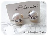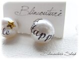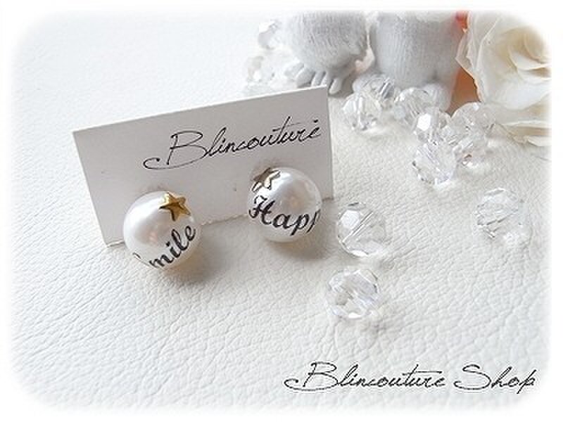 「Smile」「Happy」と書かれた一粒パールのピアスです。