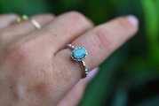 画像からの想像以上に丁寧な造りが詰まってます。石の存在感も美しいのですが、後ろに回った先端の細工もさりげなく素敵です。今回いろいろと相談にのっていただき大変助かりました。ありがとうございます。