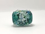 エメラルドグリーンのベースに銀箔をのせ