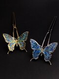 鱗粉の艶めきを表現した着彩で角度によって微かに表情を変えます。可動式なので、ヘアアップの際にお好きな位置で挿すことが出来ます。