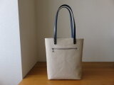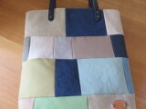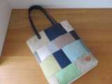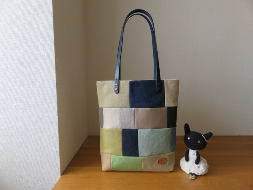 別底仕立てで色々な種類の帆布をパッチワークしてお出かけに調度のトートバッグを作りました。