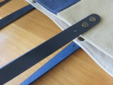 持ち手は紺色のヌメ革の市販の持ち手ですが、3㎝厚できちんと裏側も処理されたしっかりした持ち手です。