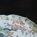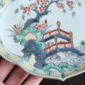 黄色の縁が可愛い◆花と鳥。伊万里 染錦変形皿 色絵 骨董品 antiques 器 幕末〜明治期