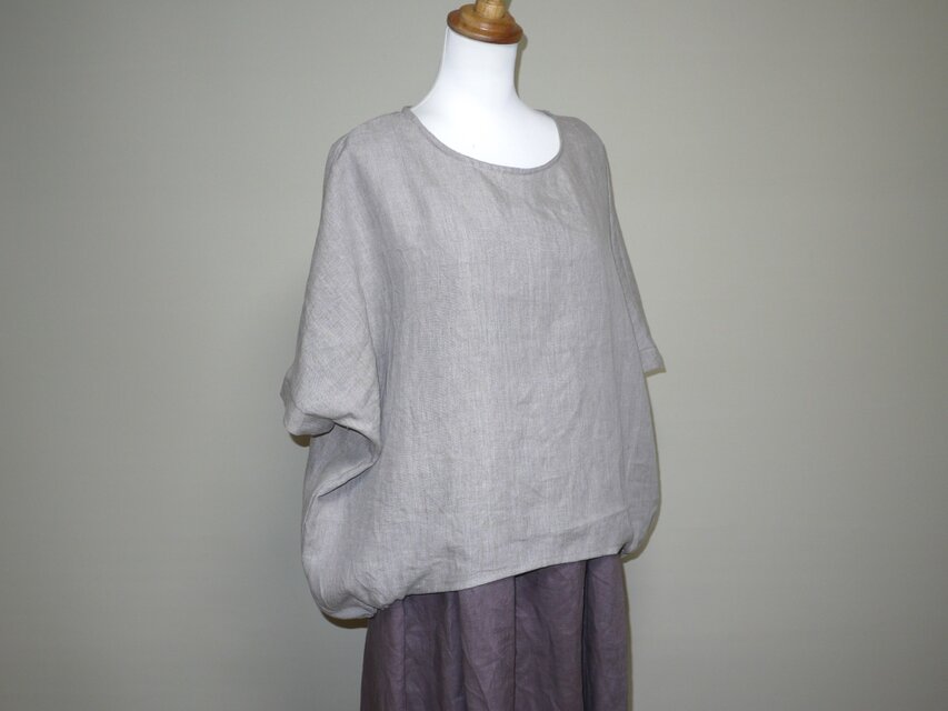 ゆったりしたドルマン袖と深く後ろに下がったバルーンの裾が特徴のプルオーバーです。