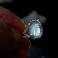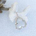 一見するとホワイトアゲートですが、光にかざすと眩いばかりの虹が浮かび上がるイリスアゲート(アイリスアゲート)を粒飾りのペンダントに仕上げました。