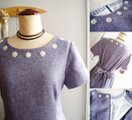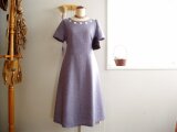 ちょっとおすましで上品な、淡青ツイードのワンピースです。