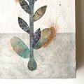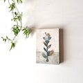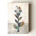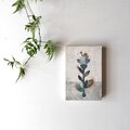 色付けした木製パネルの上に、オイルパステルで彩色したお花をコラージュしました。