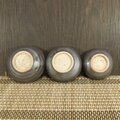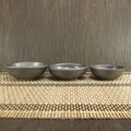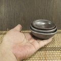 深めの小皿〜豆皿の3枚セットです.釉薬は還元焼成(不完全燃焼)でマット調の黒〜こげ茶〜鈍色にあやしく変色しています.