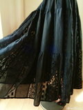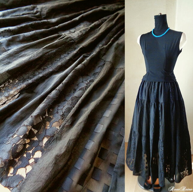 パッチワークスカート 着回し 大人可愛い ギャザースカート ロングスカート フレアスカート マキシ丈スカート マキシ丈 黒 ブラック サマーブラック サマーブラックコーデ 夏の黒 大人かわいい 大人可愛い シック パリ ロマンティック ゆったり ウエストゴム サイズフリー ロングシーズン対応可能 誰ともかぶらない ご褒美 1点もの