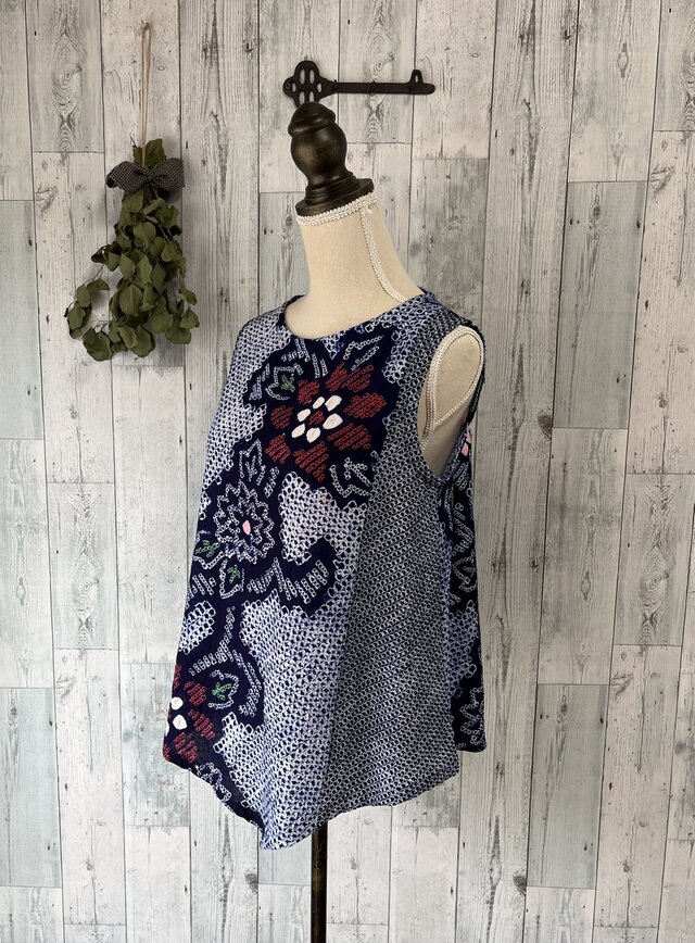 ☆ 有松絞 パッチ浴衣リメイク アシンメトリータンクブラウス ♪