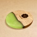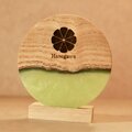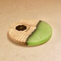 桐の端材とレジンで作ったコースター。日本の伝統的な家具である紀州箪笥の製造過程で発生する桐の端材を再利用して作っています。