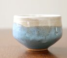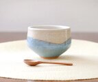柔らかホワイト&ブルー かけ分けの幅広お湯のみ
