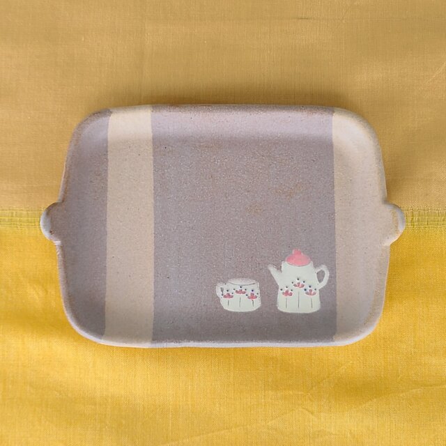 その上に、化粧土と顔料で、お茶の時間をイメージしたワンポイントを施しました。