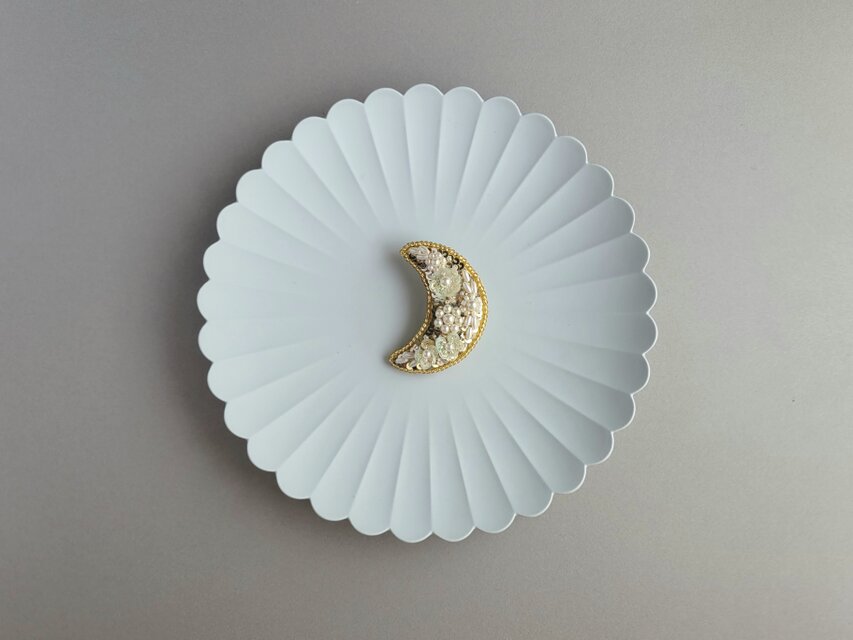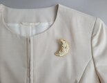 小ぶりながらも存在感のある、金色お月様のブローチ。