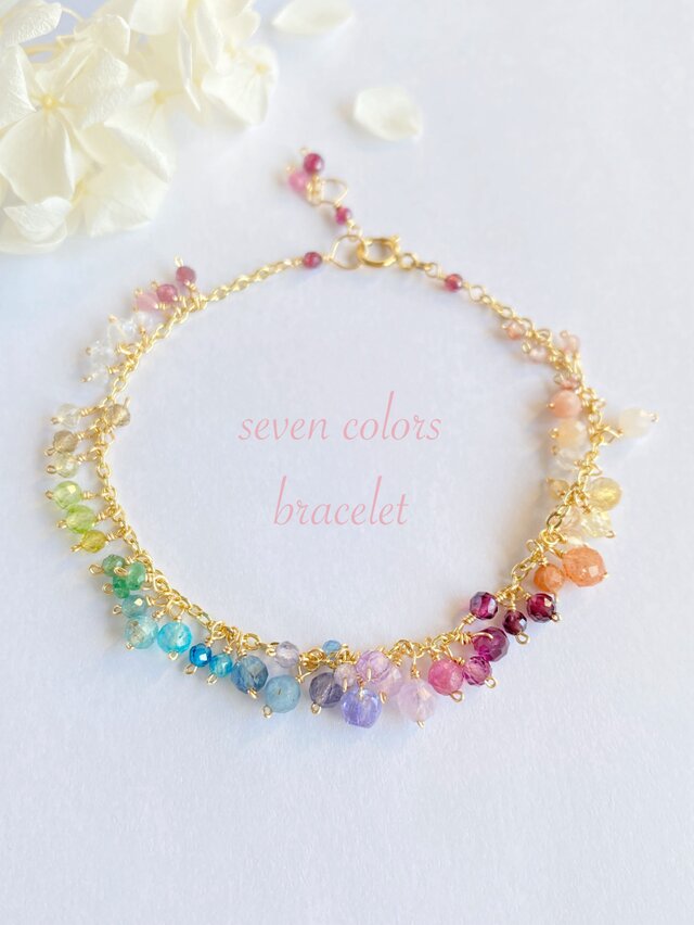 再々販 14kgf【七色のお守りブレスレット】アクアマリン、タンザナイト、アイオライト、トルマリン他 ac/787-6