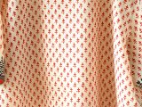 木版更紗の伝統的な小柄の「ブーティ」。白地に落ち着いたラジャスタンレッドのツリー(?)が行儀よく並んでいます。今では見かけることが少なくなった柄、そして間違いなく木版更紗による染め付けです。