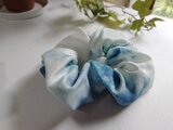 薄手のシルク生地を藍染め、シュシュに仕立てました。