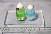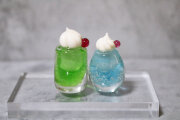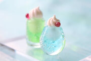 バーナーワークの技法で制作した、手作りのガラスの置き飾り「クリームソーダ」です。
