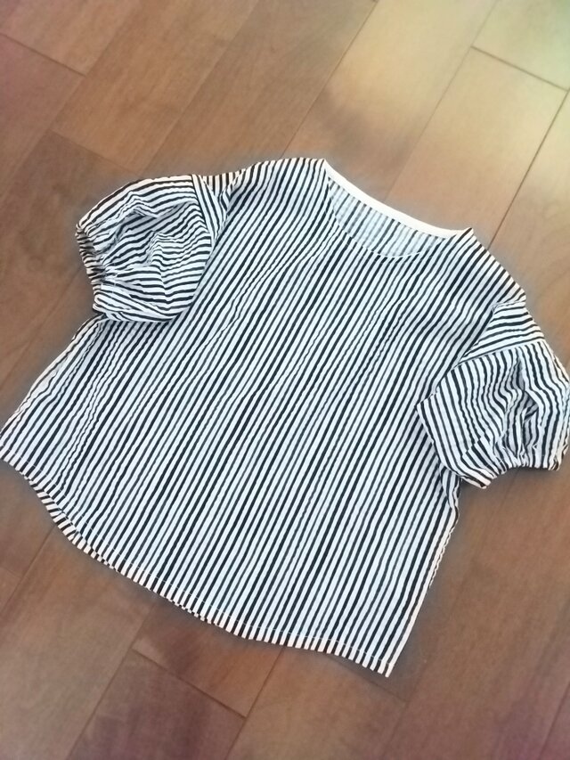 サマーセール!着てないみたいなストライプコットンリップルトップス(ブラック)