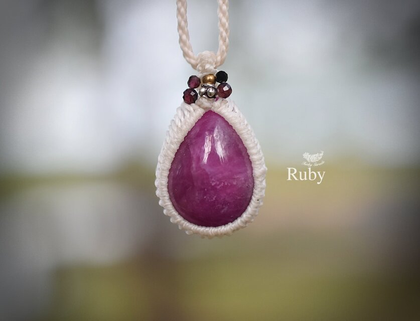 ◆このたびはナチュラルホワイト色の蝋引き糸を使用しマクラメ編み装飾を施しました。