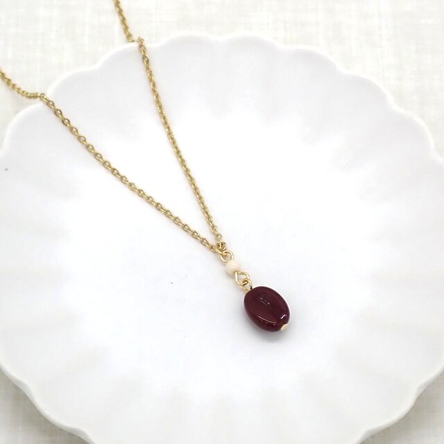 珈琲豆の形のチェコビーズの大人可愛いネックレスです。