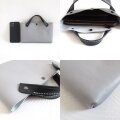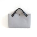〇弾力のあるライトグレーの型押しシュリンクレザーにネイビーのハンドルをチョイス。