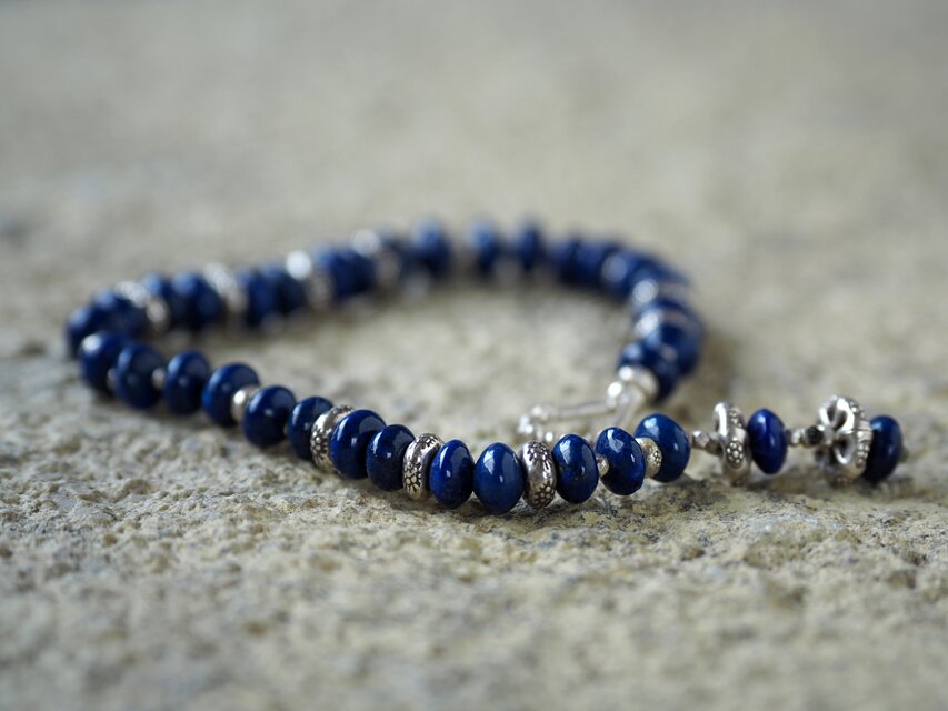鮮やかなラピスラズリのロンデルビーズを繋いだブレスレット