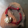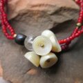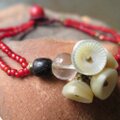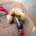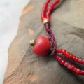 留めは、ボヘミアからネパールに渡ったシェルパコーラルと呼ばれるガラスビーズです。