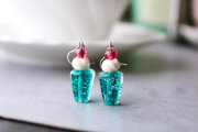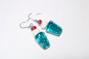 バーナーワークの技法で制作した、クリームソーダモチーフのピアスです。