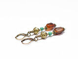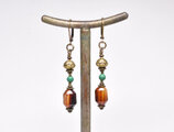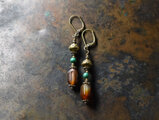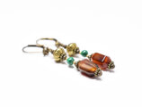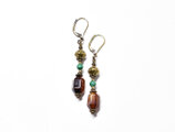 ブラウンアゲートとマラカイト、蓮華ブラスを繋いだピアスです。