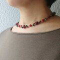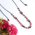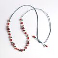 ダークなレッドとダークなグリーンの個性的な色合いのネックレスです。