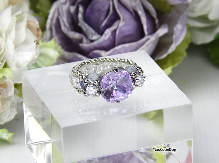 ビーズ,リング,コスチュームジュエリー,ビーズアクセサリー,ビーズリング,ジルコニア,クリスタル,パープル,キュービックジルコニア,ビジュー,スワロ,バイオレット