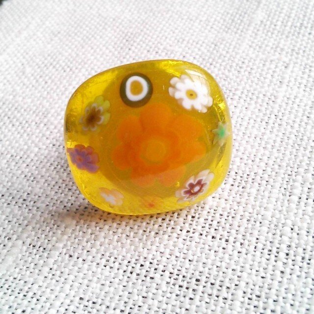 ガラスのリング(花・クリアイエロー)