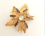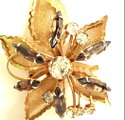 ビンテージ クリスタルと ライトブラウンの ラインストーンが美しい 立体的なお花のブローチです。