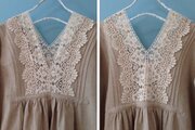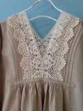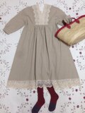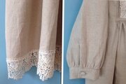 しっかりしたリネン100%の生地でゆるりしたデザインのアンティーク風レースワンピースを作りました。