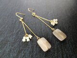 レクタングルカットのグレームーンストーンと小粒のカットガラスを華奢で繊細なイヤーアクセサリーに。