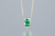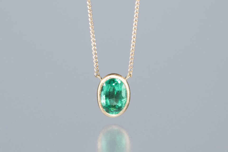 宝石を取り囲んだK18イエローゴールドが、エメラルドの存在感をシンプルに引き立てています。