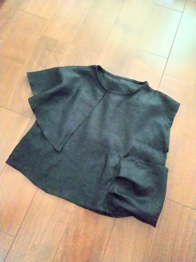 ブラックリネンデザイントップス