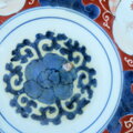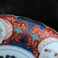見込みの花文様周りと裏面全体に濃いめの金彩の滲みが見られます。