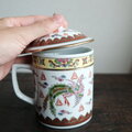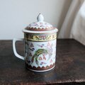 チャイナレトロで可愛い◇中国景徳鎮 赤絵金彩蓋付マグカップ 中華・台湾料理 蝶々・鳳凰・龍・花・漢字・雲