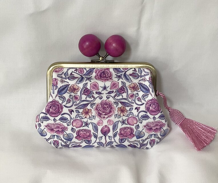 リバティ ペンローズで作りました木玉親子がま口ミニ財布です