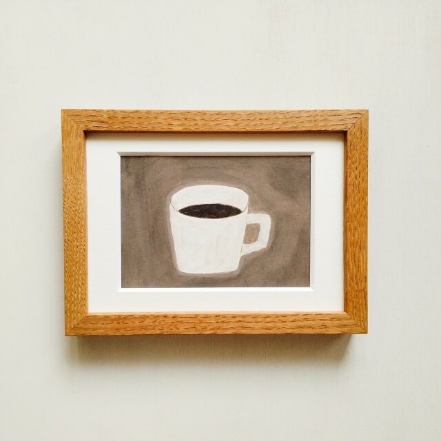 「コーヒータイム」原画 イラスト ※木製額縁入り(2Lサイズ)インテリアアート *特集掲載*