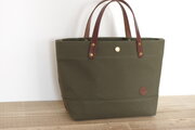 レザーハンドル 帆布トートバッグ (ポケット) オリーブ