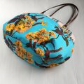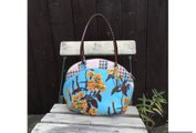 ふっくらボストンバッグ ファスナー ターコイズのボタニカル柄